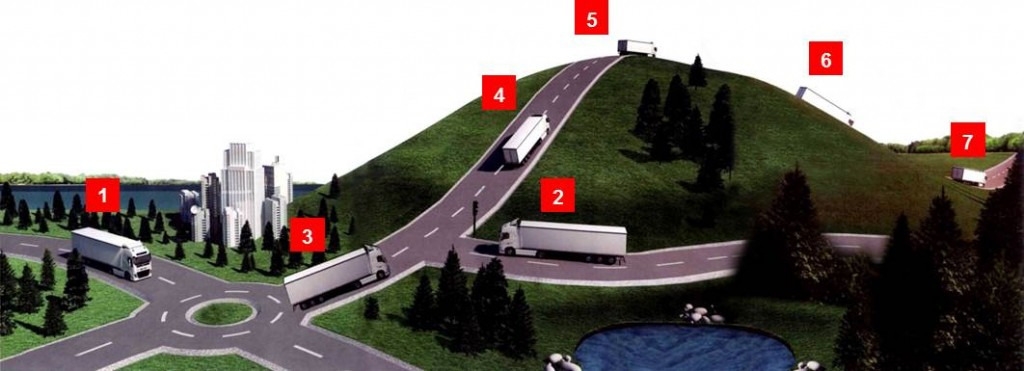 Самое важное – развить скорость и инерцию перед въездом на склон, а затем позволить, чтобы грузовой автомобиль двигался под тяжестью своего веса вперед со склона. Целью является превращение холма в равнину. Конечно, при движении в гору расход топлива будет выше по сравнению с расходом топлива грузового автомобиля, движущегося по ровной дороге, однако при спуске топливо напрасно не расходуется. Наша цель – преодолеть то же расстояние с меньшим расходом топлива, развивая при этом эффективную скорость.